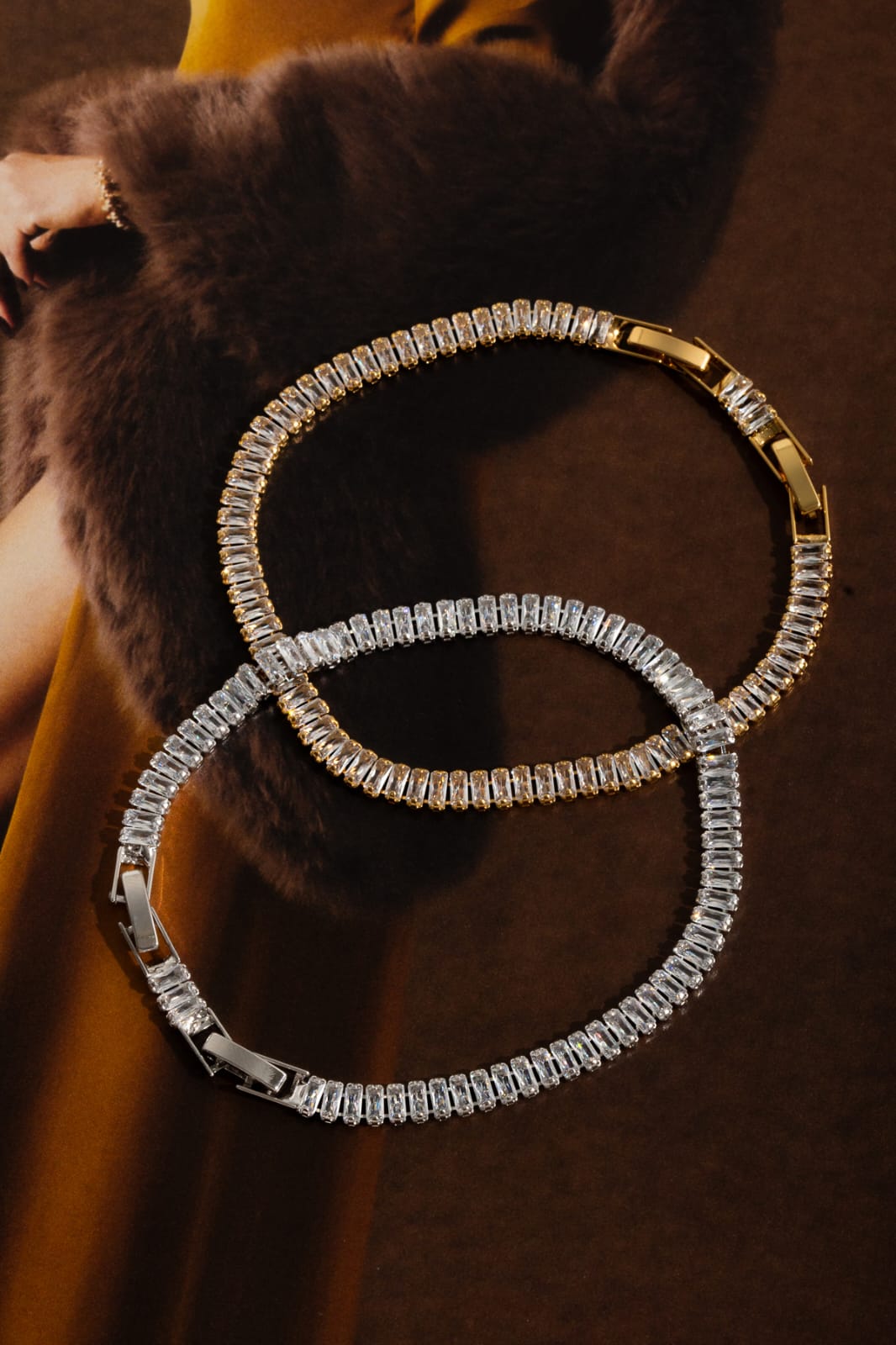 Pulseira Banhado à Ouro 18K Riviera Com Baguete em Cristal
