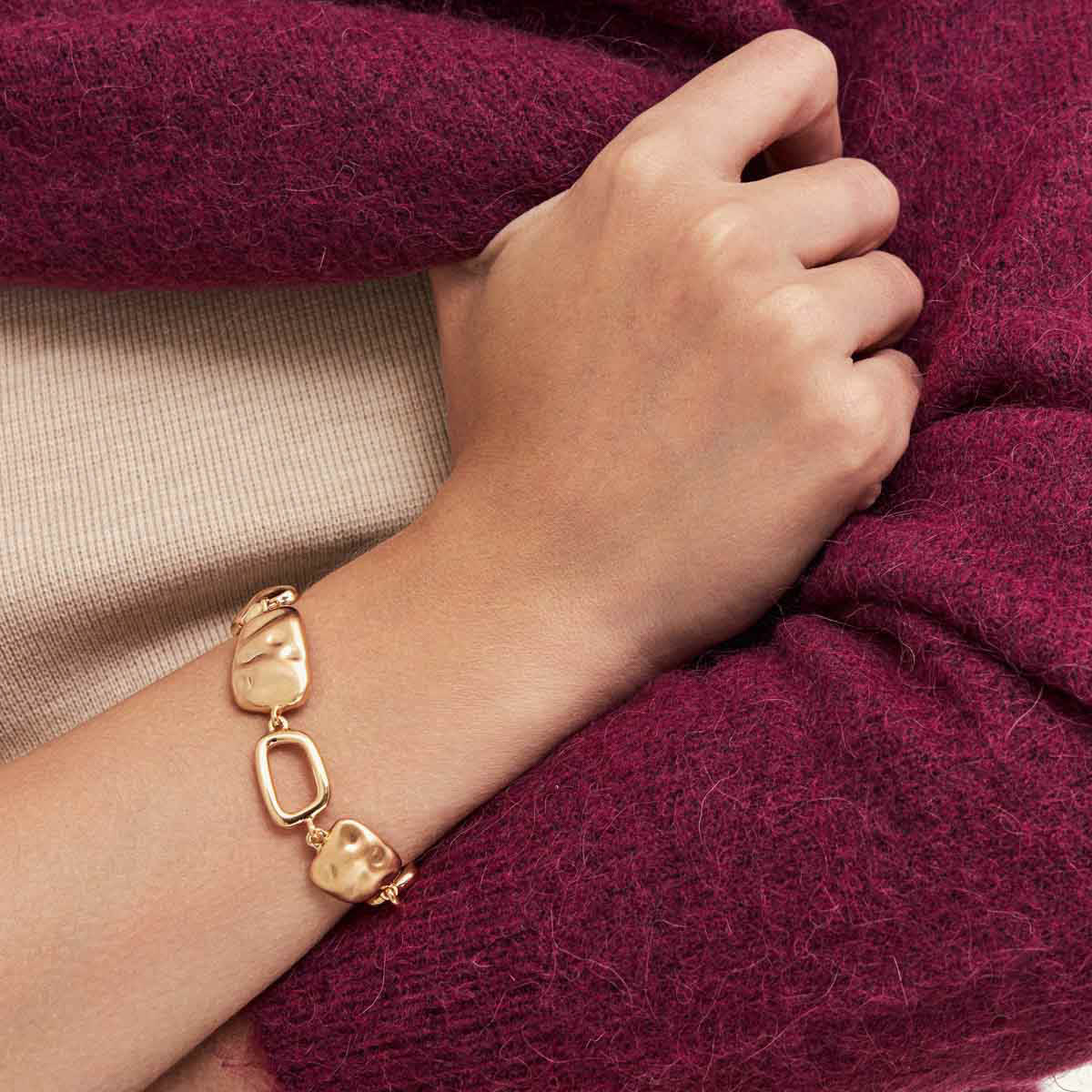 Pulseira Maleável Banhado à Ouro 18k Elos Retangular Orgânico