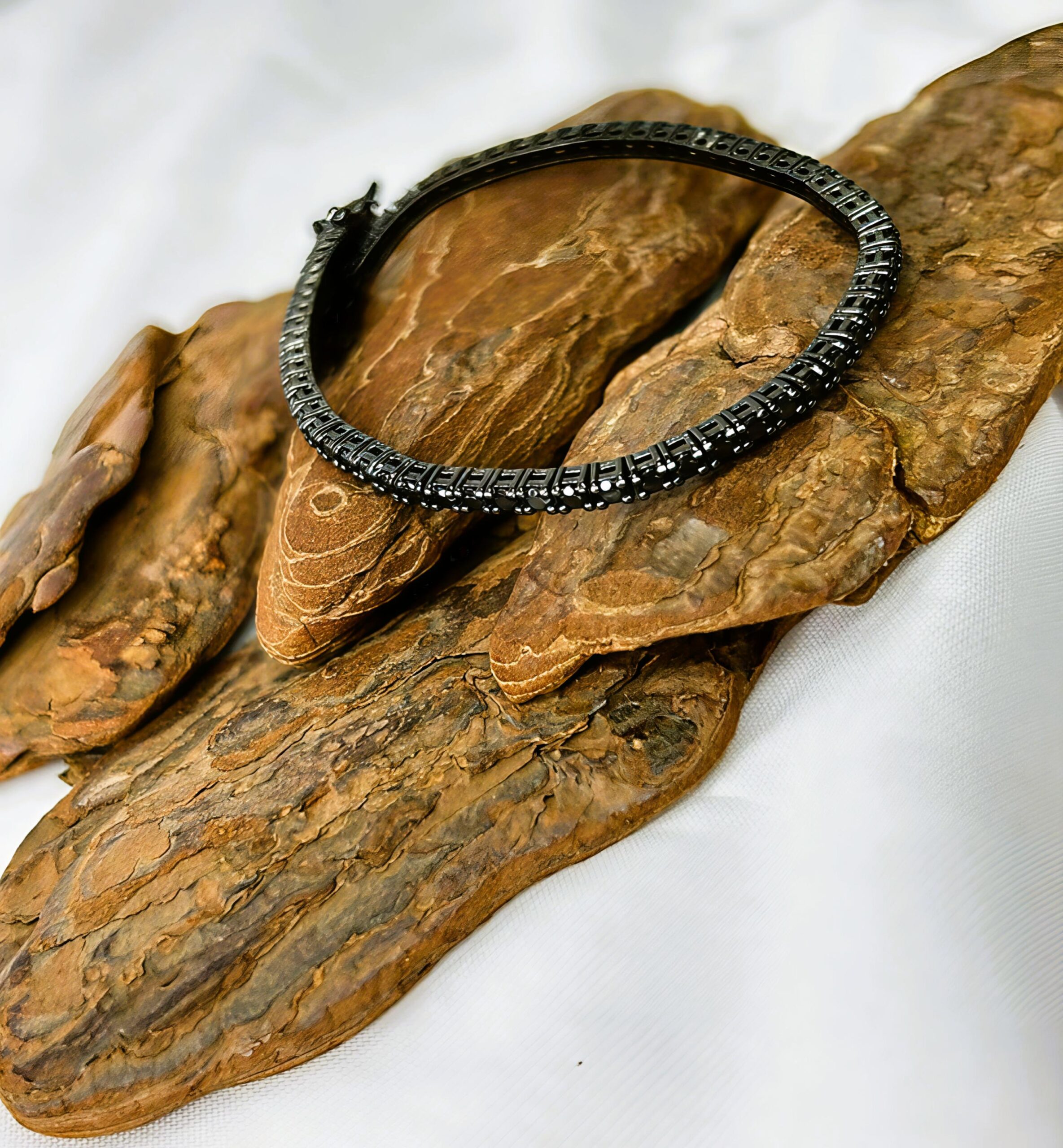 Pulseira Riviera 4 Garras Banhada Ródio Negro Cravejada com Zircônia Negra