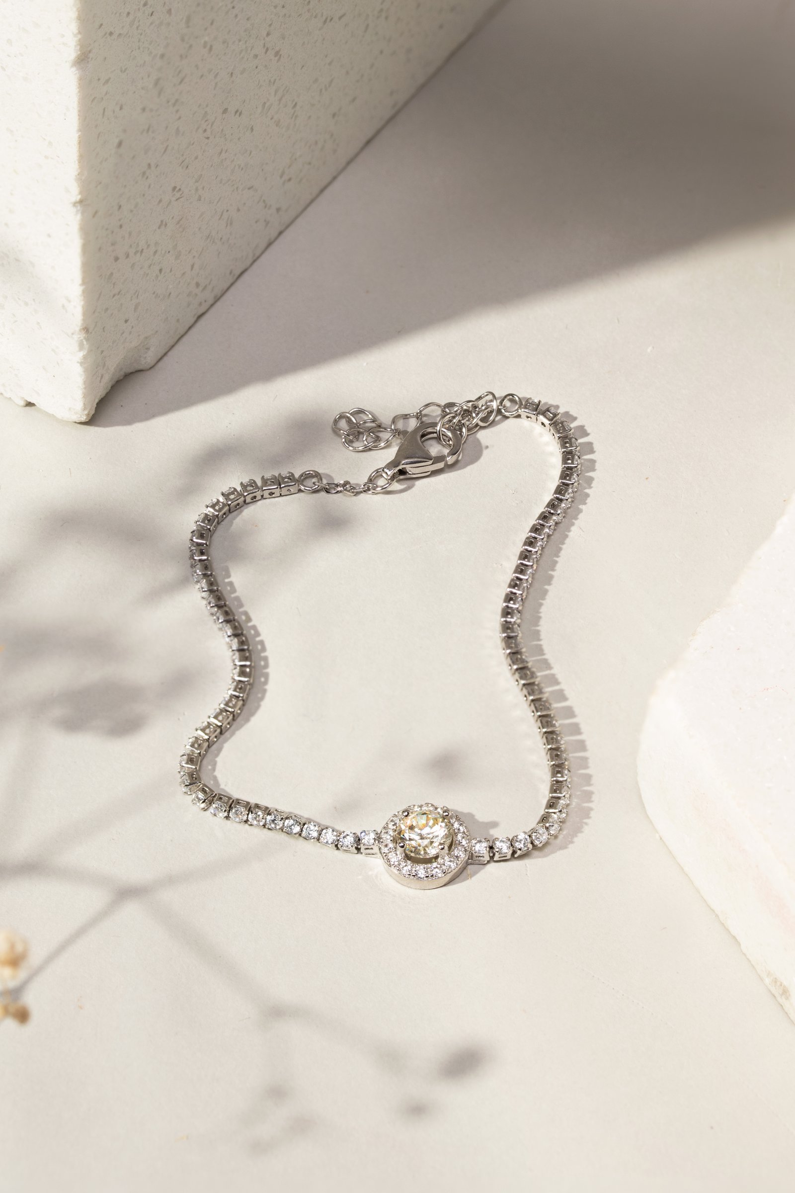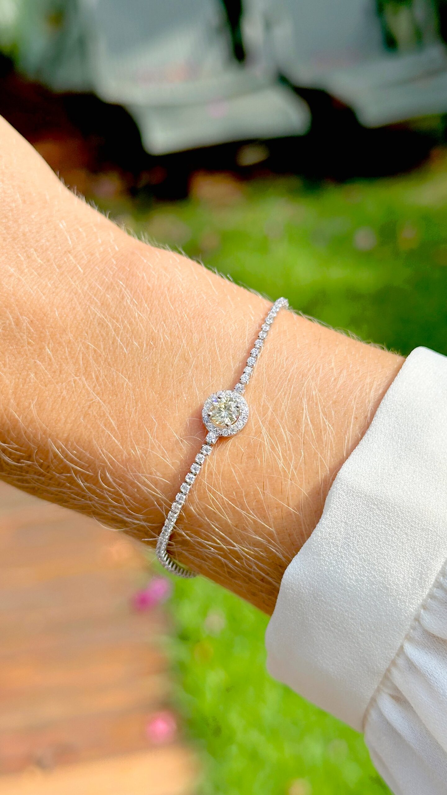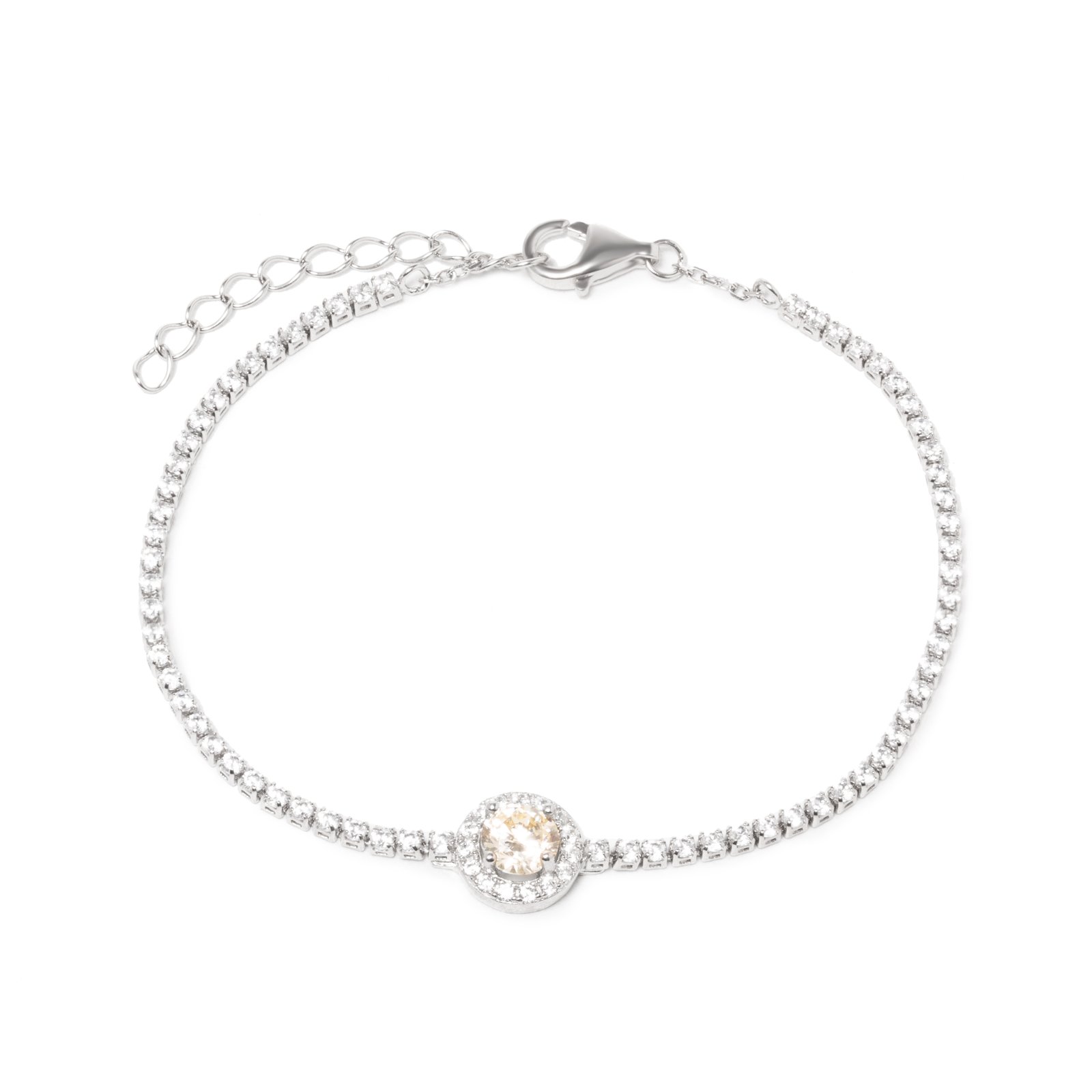 Pulseira Riviera Banhada à Ródio Branco Cravejada com Zircônia e Cristal Diamond Amarelo